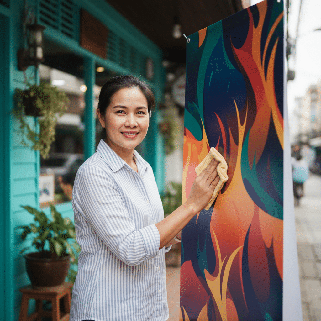 ทริคดูแลป้ายไวนิลหน้าร้านให้สีสด ทนแดดทนฝน ยืดอายุใช้งาน