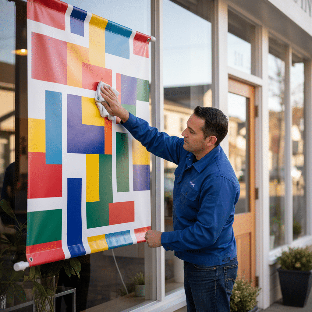 - ติดตั้งและจัดเก็บอย่างเหมาะสม: การติดตั้งป้ายให้ตึงพอดีจะช่วยลดความเสียหายจากแรงลม และหากต้องถอดเก็บ ควรใช้วิธีม้วนแทนการพับเพื่อป้องกันรอยยับถาวร