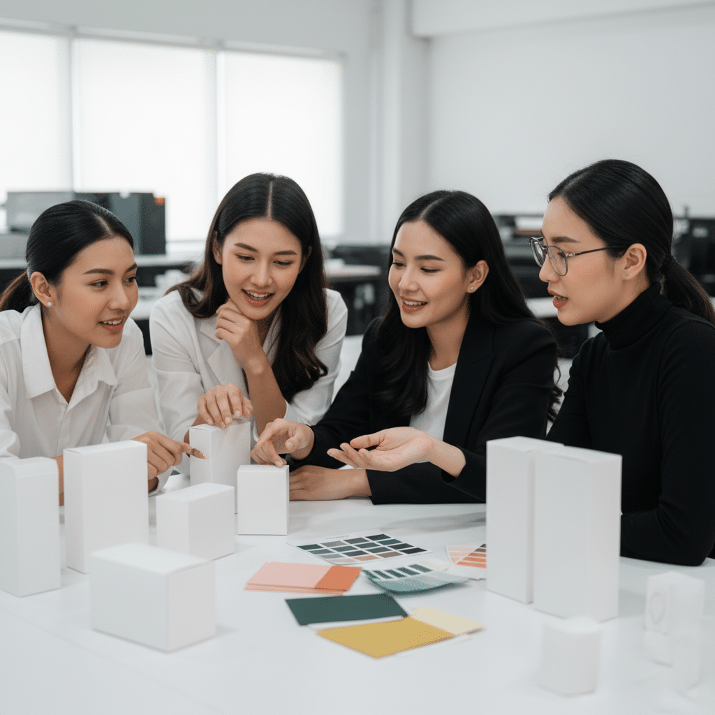 - จะวางขายที่ไหนและใช้วัสดุอะไร? (Where/How?) ช่องทางการจัดจำหน่ายและประเภทของสินค้าเป็นตัวกำหนดวัสดุที่เหมาะสม เช่น สินค้าที่ต้องการภาพลักษณ์หรูหราอาจเหมาะกับกล่องกระดาษแข็งคุณภาพสูง ในขณะที่สินค้าทั่วไปอาจใช้บรรจุภัณฑ์ที่เน้นความสะดวกและทนทาน
