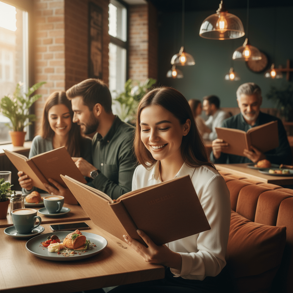 เมนูเล่มที่ออกแบบมาอย่างดีและชัดเจนช่วยสนับสนุนกระบวนการตัดสินใจนี้ได้ดีกว่า ลูกค้าสามารถกวาดสายตาดูภาพรวม เปรียบเทียบรายการอาหารและราคาได้อย่างง่ายดาย โดยไม่มีโฆษณาหรือการแจ้งเตือนจากโทรศัพท์มารบกวนสมาธิ ช่วยให้พวกเขาสามารถวางแผนการใช้จ่ายและเลือกเมนูที่ตรงกับความต้องการและงบประมาณได้อย่างสบายใจ