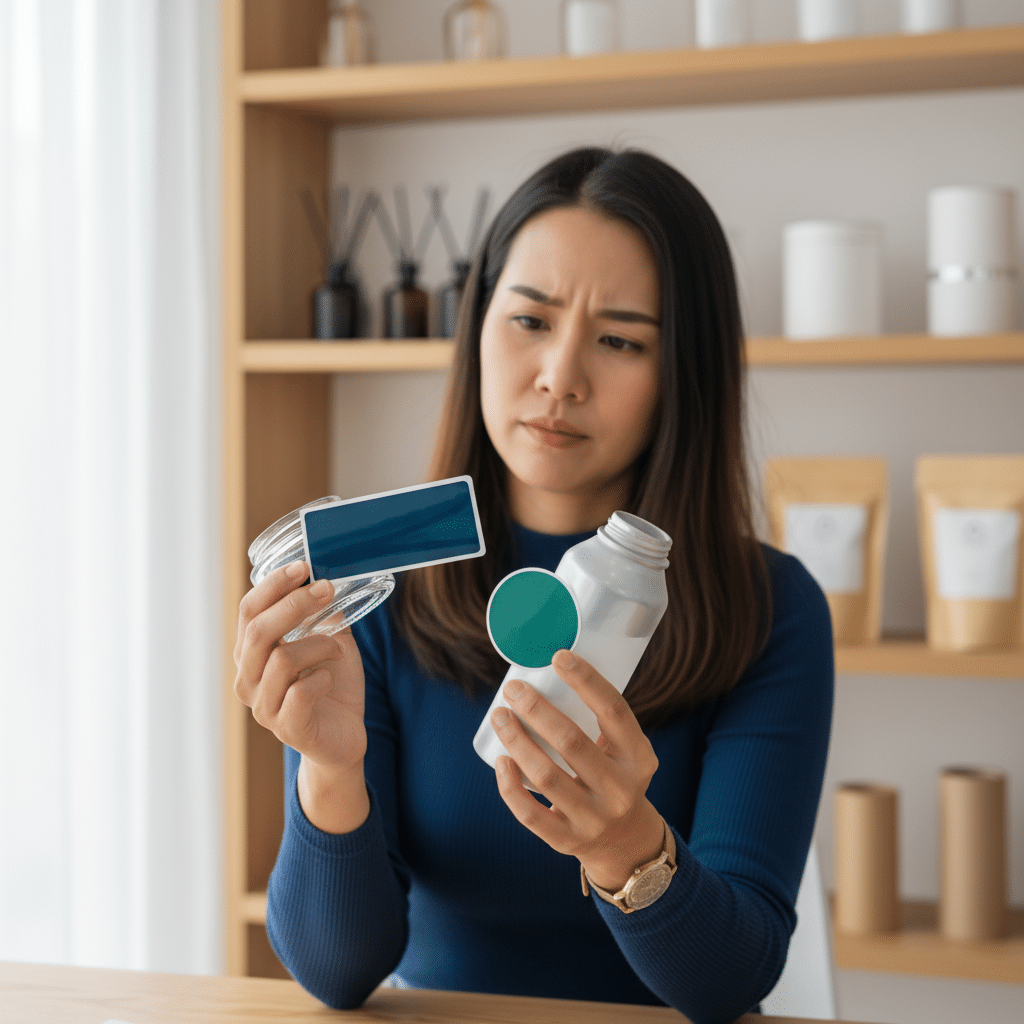 สิ่งแรกที่ต้องพิจารณาคือตัวผลิตภัณฑ์เอง หากบรรจุภัณฑ์มีลักษณะเป็นขวดแก้วหรือพลาสติกแข็งที่มีพื้นผิวเรียบ สติ๊กเกอร์ PP จะให้ผลลัพธ์ที่สวยงามและดูหรูหรา แต่หากบรรจุภัณฑ์เป็นหลอดนิ่มที่ต้องบีบใช้งานบ่อยครั้ง สติ๊กเกอร์ PVC ที่มีความยืดหยุ่นสูงจะเป็นตัวเลือกที่เหมาะสมกว่า เพื่อป้องกันปัญหาสติ๊กเกอร์ยับหรือเด้งหลุดออกจากผิว