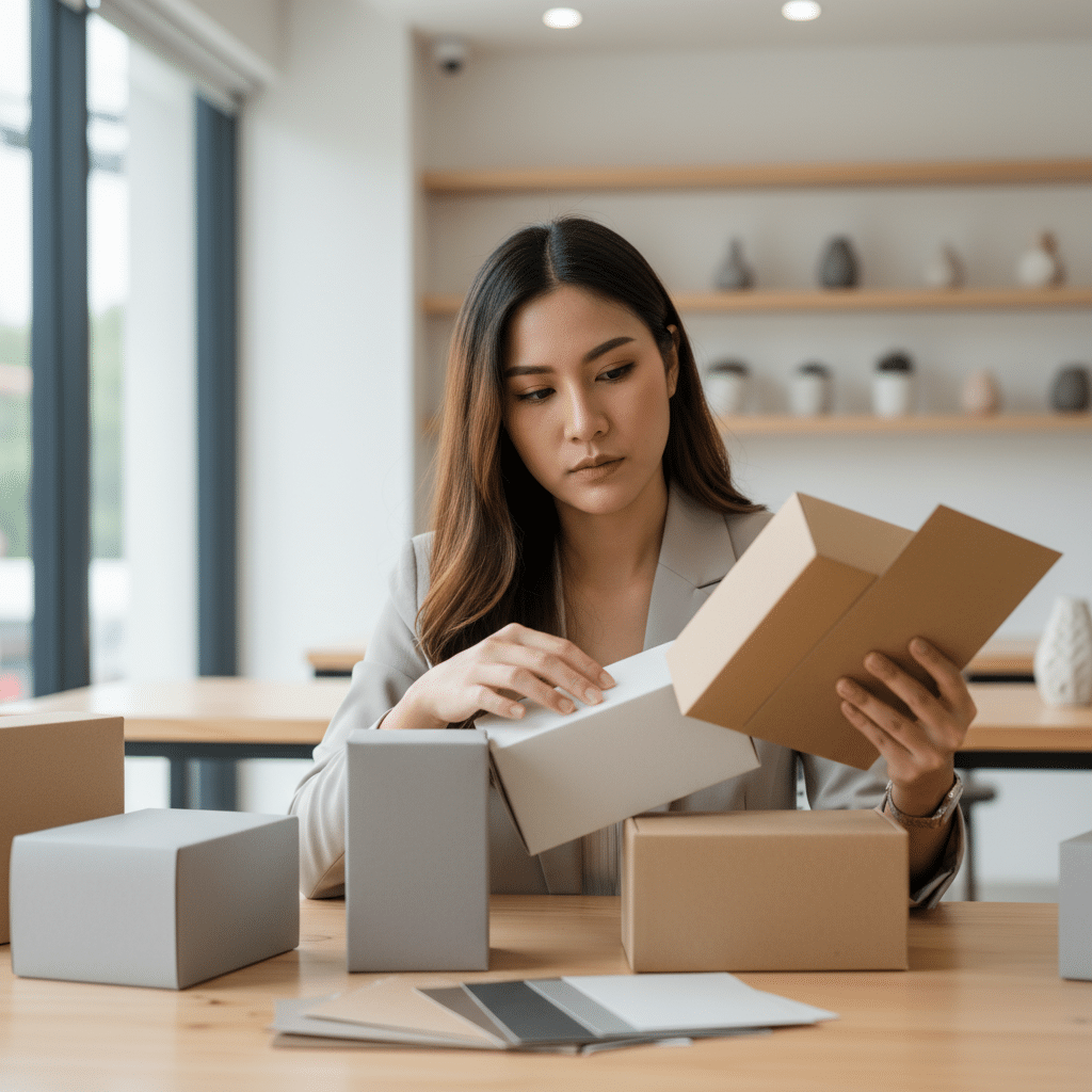สำหรับผู้ที่เพิ่งเริ่มต้น อาจลองใช้วิธีที่ง่ายและประหยัดกว่า เช่น การติดสติกเกอร์ที่ออกแบบมาอย่างดี หรือการใช้ตรายางปั๊มโลโก้ลงบนกล่องสีพื้นเรียบๆ เพื่อสร้างเอกลักษณ์โดยไม่ต้องลงทุนสั่งผลิตในปริมาณมาก