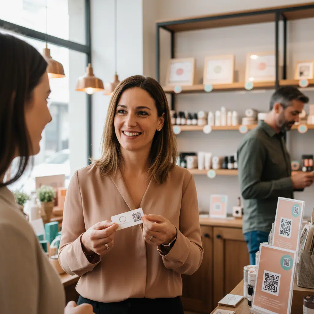 - การประยุกต์ใช้: ใช้ Dynamic QR Code บนสื่อสิ่งพิมพ์ต่างๆ เช่น นามบัตร, สติ๊กเกอร์ติดหน้าร้าน, หรือโปสเตอร์ในงานอีเวนต์ โดยนำผู้สแกนไปยัง Landing Page ที่ออกแบบมาเพื่อแลกข้อมูลติดต่อ (เช่น อีเมล, เบอร์โทร) กับสิ่งที่มีคุณค่า เช่น E-book, ส่วนลดพิเศษ, หรือสิทธิ์เข้าร่วมสัมมนาออนไลน์