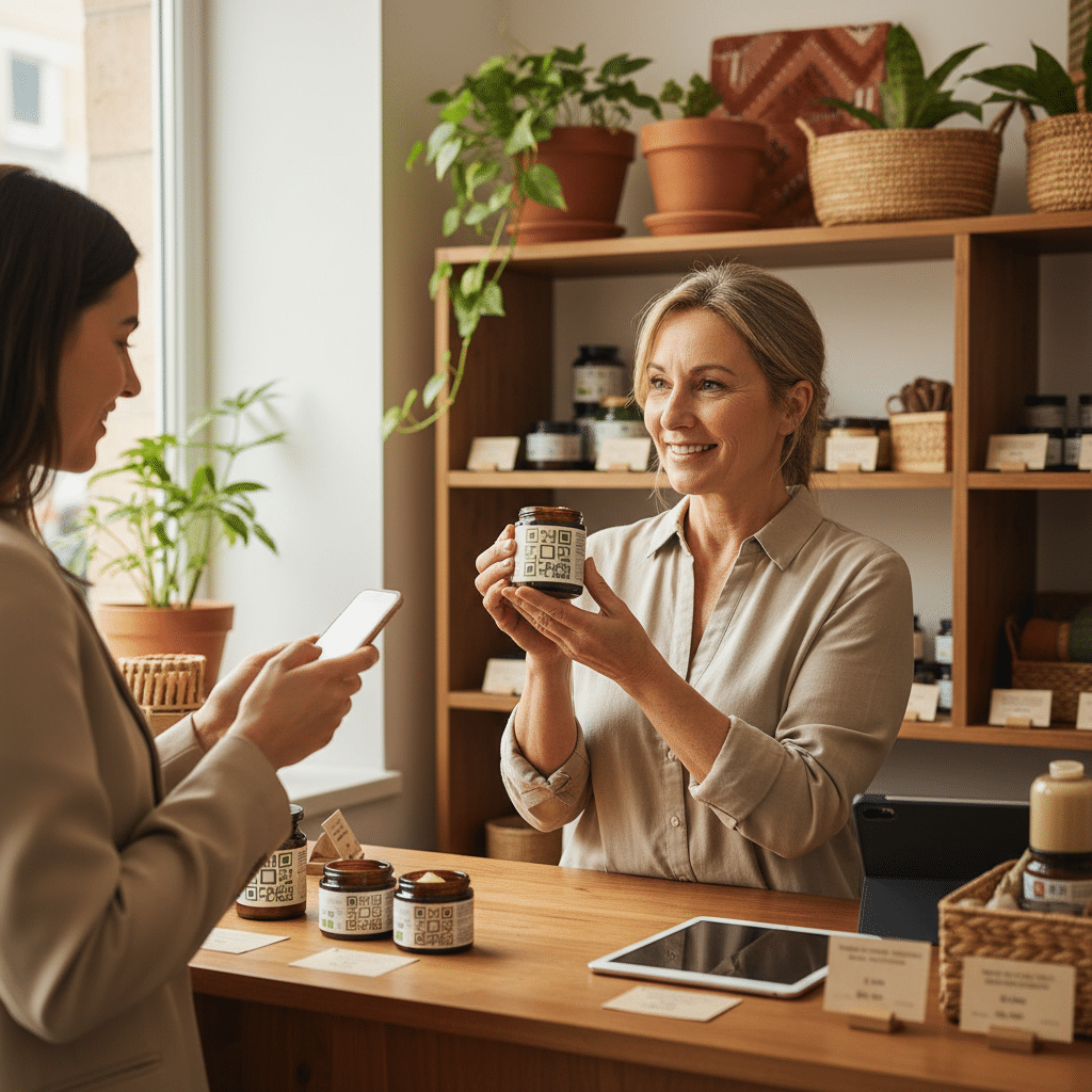ความโปร่งใสเป็นปัจจัยสำคัญในการสร้างความไว้วางใจของผู้บริโภค การพิมพ์ QR Code บนฉลากสินค้าสามารถใช้เป็นเครื่องมือในการยืนยันว่าเป็นสินค้าของแท้ ช่วยแก้ปัญหาเรื่องสินค้าลอกเลียนแบบ นอกจากนี้ยังสามารถให้ข้อมูลเชิงลึกเกี่ยวกับผลิตภัณฑ์ที่อาจไม่สามารถใส่ลงบนฉลากได้ทั้งหมด เช่น ข้อมูลทางโภชนาการอย่างละเอียด, ข้อมูลเกี่ยวกับสารก่อภูมิแพ้, แหล่งที่มาของวัตถุดิบ, หรือใบรับรองมาตรฐานต่าง ๆ