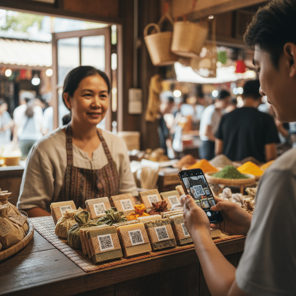 - การให้ข้อมูลผลิตภัณฑ์เชิงลึก: พื้นที่บนฉลากสินค้ามีจำกัด แต่ QR Code สามารถให้ข้อมูลเพิ่มเติมได้ไม่สิ้นสุด เช่น วิดีโอสาธิตวิธีการใช้งาน, เรื่องราวของแบรนด์, ข้อมูลโภชนาการ, หรือรีวิวจากผู้ใช้จริง
