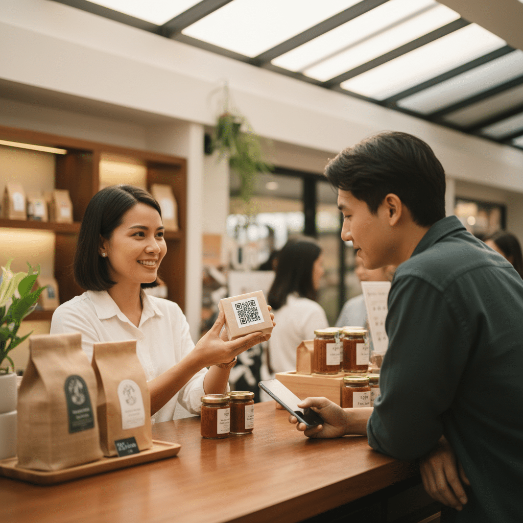 | สินค้าอุปโภคบริโภค (FMCG) | ให้ข้อมูลโภชนาการ, สอนวิธีใช้, จัดแคมเปญชิงโชค | บนฉลากสินค้า, ฝาผลิตภัณฑ์, กล่องบรรจุ | “สแกนลุ้นโชค!” |