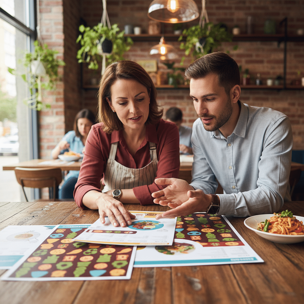 สำหรับผู้ประกอบการที่ต้องการนำแนวคิดเหล่านี้ไปปฏิบัติจริง GIANT PRINT คือโรงงานผลิตสื่อสิ่งพิมพ์ครบวงจรที่พร้อมเป็นผู้ช่วยสานต่อไอเดียของคุณให้เป็นจริง เรามีบริการออกแบบและผลิตสื่อสิ่งพิมพ์ทุกรูปแบบ ไม่ว่าจะเป็นเมนูอาหาร, ฉลากสินค้า, สติ๊กเกอร์, นามบัตร, บัตรสะสมแต้ม, และโบรชัวร์ ด้วยทีมงานมืออาชีพ เครื่องพิมพ์มาตรฐานทันสมัย และวัสดุคุณภาพสูง พร้อมให้คำปรึกษาเพื่อตอบโจทย์ธุรกิจ SME ของท่านอย่างดีที่สุด