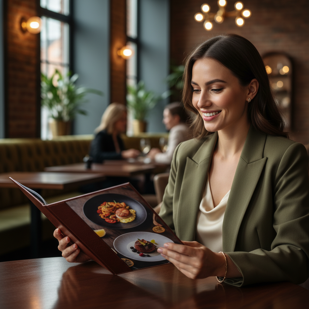 | ปกหนัง/ปกแข็ง | ให้ความรู้สึกหรูหรา สง่างาม ทนทานสูง สร้างภาพลักษณ์ความเป็นมืออาชีพและทางการ | ร้านอาหารไฟน์ไดนิ่ง, ห้องอาหารในโรงแรม, สเต็กเฮาส์ ที่เน้นความพรีเมียม |
