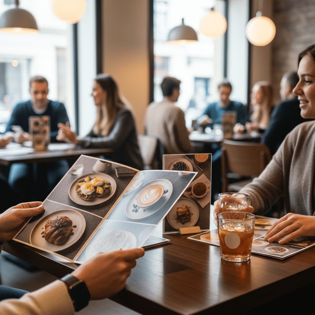 การออกแบบและพิมพ์เมนูอาหารและป้ายตั้งโต๊ะให้สวยปัง อัปยอดขายร้าน ถือเป็นกลยุทธ์สำคัญที่ผู้ประกอบการร้านอาหารและคาเฟ่ไม่ควรมองข้าม เมนูอาหารไม่ได้เป็นเพียงรายการอาหารและราคา แต่ยังเป็นเครื่องมือทางการตลาดที่ทรงพลัง สามารถสร้างความประทับใจแรกและกระตุ้นการตัดสินใจสั่งซื้อของลูกค้าได้โดยตรง การออกแบบที่ดีจะช่วยสะท้อนภาพลักษณ์ของร้าน สร้างความน่าเชื่อถือ และนำไปสู่การเพิ่มยอดขายในที่สุด