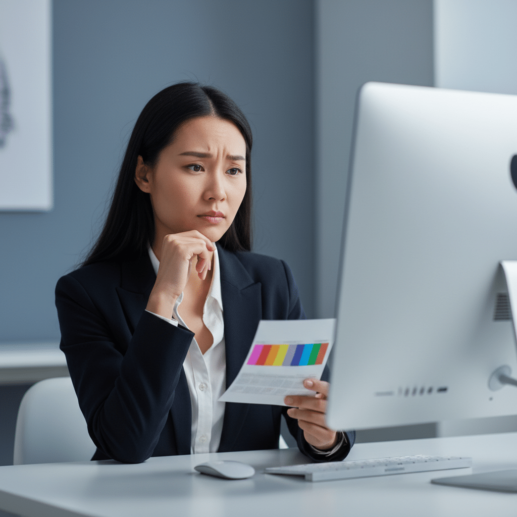 - การดูดหรือคัดลอกสีจากแหล่งที่ไม่น่าเชื่อถือ: การใช้เครื่องมือดูดสี (Eyedropper Tool) จากรูปภาพบนเว็บไซต์หรือหน้าจอโดยตรงอาจได้ค่าสีที่ไม่ถูกต้อง เนื่องจากสีที่เห็นบนหน้าจออาจผ่านการบีบอัดหรือมีการแสดงผลที่คลาดเคลื่อนไปจากต้นฉบับแล้ว