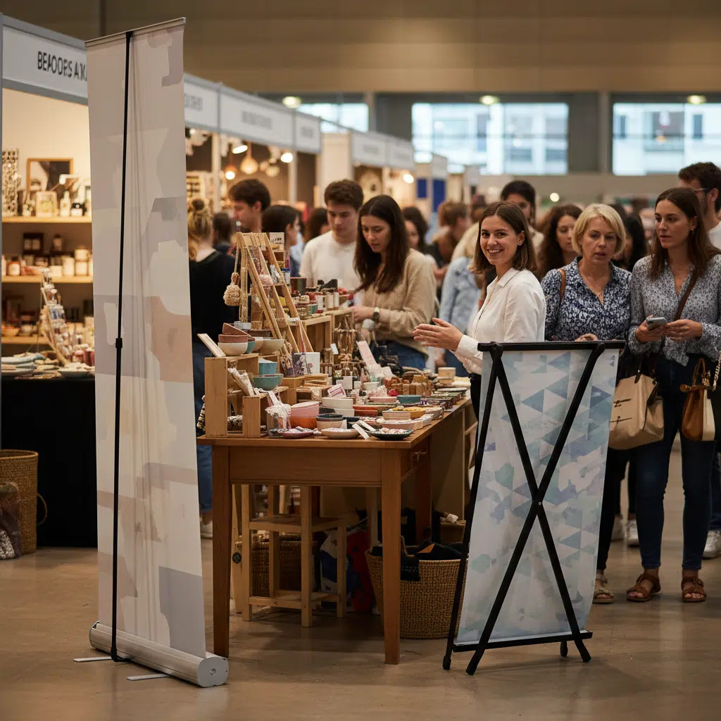 ออกบูธต้องมี! เทียบ ‘Roll up vs X-Stand’ ป้ายไหนพกง่าย ตั้งทน ไม่ล้มกลางงาน