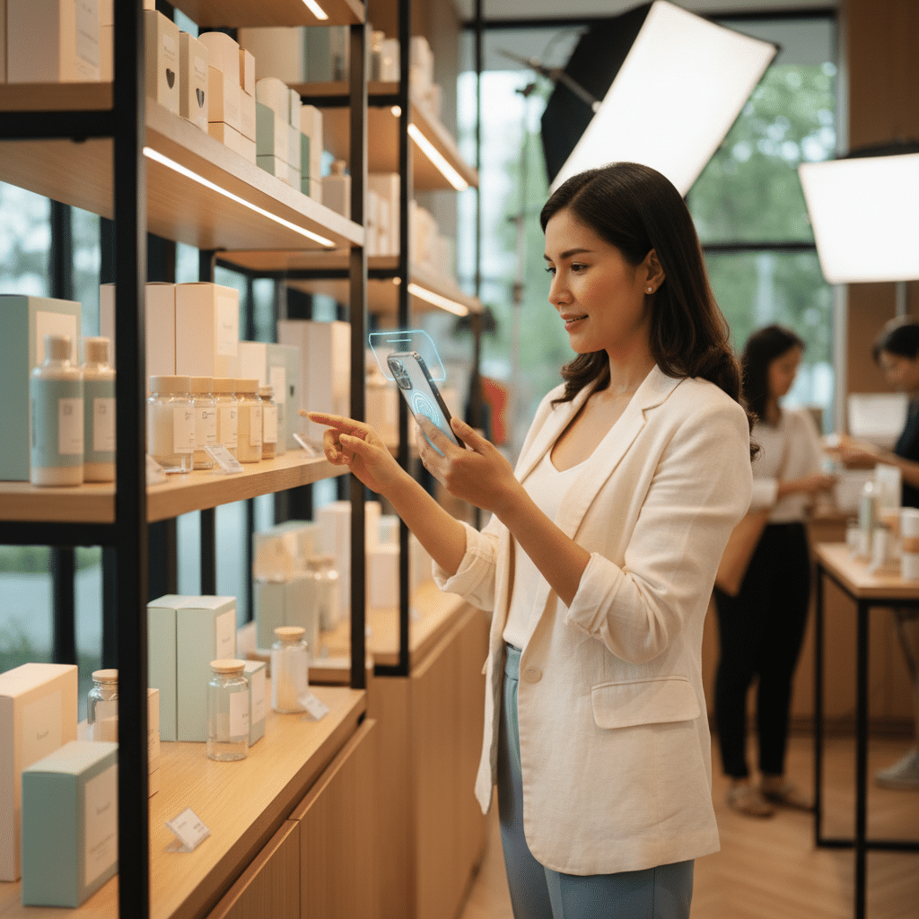 หลักการเดียวกันนี้สามารถนำมาประยุกต์ใช้กับฉลากสินค้าได้อย่างลงตัว ลองนึกภาพลูกค้าที่กำลังเลือกซื้อลิปสติก สามารถสแกนฉลากที่กล่องเพื่อทดลองสีลิปสติกเฉดต่างๆ บนใบหน้าของตนเองผ่านกล้องมือถือ หรือลูกค้าที่สนใจซื้อเก้าอี้ สามารถสแกนสติ๊กเกอร์บนสินค้าตัวโชว์ เพื่อดูโมเดล 3 มิติของเก้าอี้ในสีต่างๆ และวางมันลงในห้องของตนเองแบบเสมือนจริงได้ทันที ประสบการณ์เช่นนี้ไม่เพียงสร้างความตื่นตาตื่นใจ แต่ยังช่วยลดความลังเลและเพิ่มความมั่นใจในการตัดสินใจซื้อได้อย่างมีนัยสำคัญ
