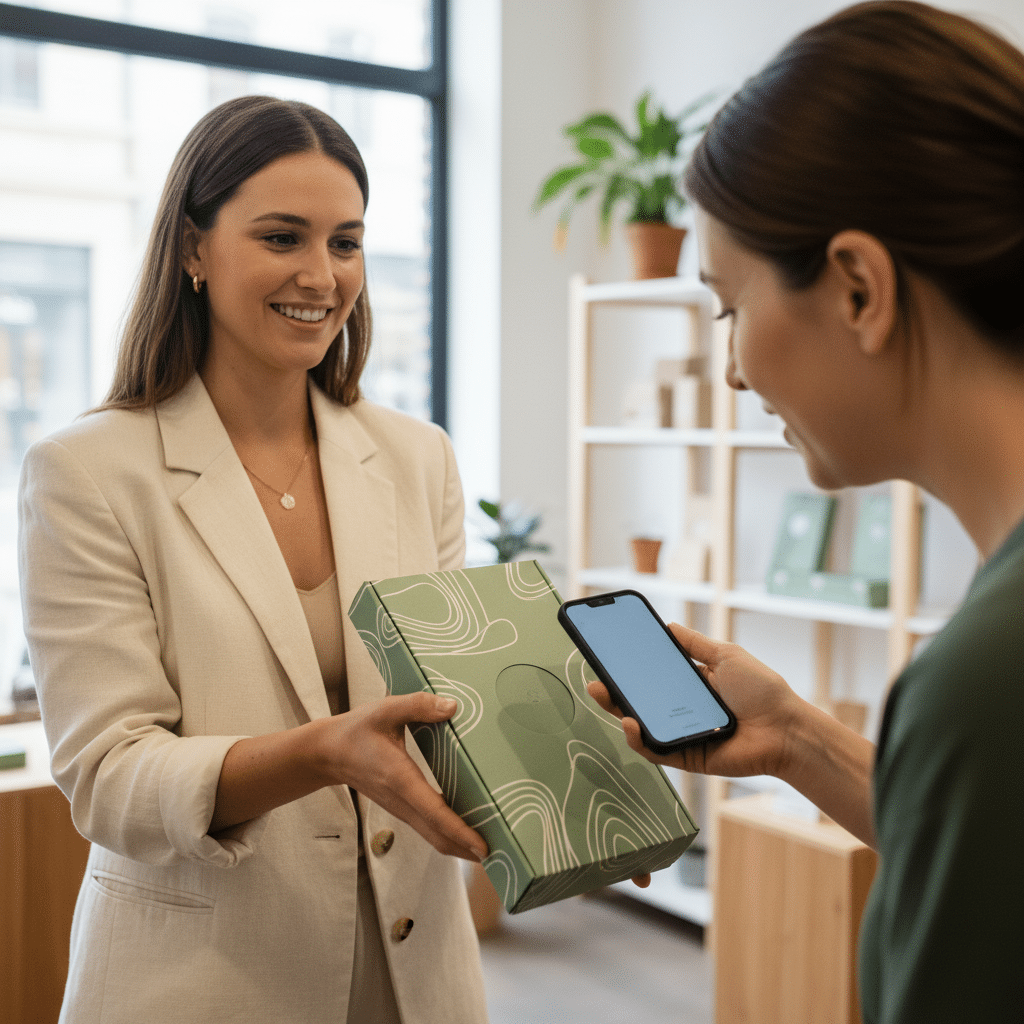 - QR Code (Quick Response Code): เป็นเทคโนโลยีที่เข้าถึงง่ายและคุ้นเคยกันดีที่สุด ผู้บริโภคสามารถสแกน QR Code เพื่อเชื่อมต่อไปยังเว็บไซต์, โซเชียลมีเดีย, หรือหน้าข้อมูลผลิตภัณฑ์ได้ทันที SME สามารถใช้ QR Code เพื่อให้ข้อมูลเชิงลึกเกี่ยวกับผลิตภัณฑ์, บอกเล่าเรื่องราวของแบรนด์, หรือจัดแคมเปญการตลาดได้อย่างง่ายดาย
