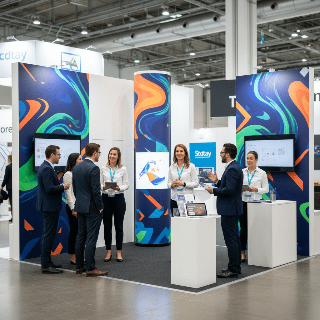 ก่อนจะถึงวันงาน ควรศึกษาแผนผังของงานแสดงสินค้าเพื่อเลือกตำแหน่งบูธที่มีคนสัญจรผ่านไปมามากที่สุด เช่น ใกล้ทางเข้า-ออก, บริเวณหัวมุม หรือใกล้จุดพักและเวทีกิจกรรม เมื่อได้ทำเลที่ดีแล้ว การวางตำแหน่งของป้ายโฆษณาและสแตนดี้ภายในบูธก็เป็นสิ่งสำคัญ ควรติดตั้งป้ายหลัก เช่น ป้ายไวนิลหรือสแตนดี้ Roll-up ในจุดที่ผู้คนสามารถมองเห็นได้ตั้งแต่ยังเดินมาไม่ถึงบูธ โดยต้องไม่บดบังทางเข้าหรือเกะกะการเดินของลูกค้า การทดลองมองจากมุมต่างๆ รอบบูธจะช่วยให้เข้าใจมุมมองของลูกค้าและหาตำแหน่งติดตั้งที่ดีที่สุดได้
