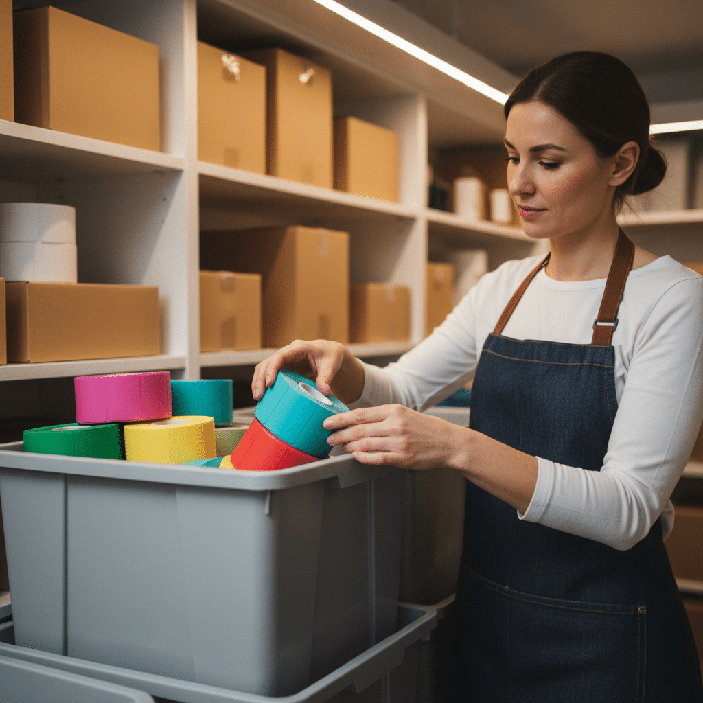 - สติ๊กเกอร์แบบม้วน (Roll Form): ต้องจัดเก็บในแนวนอน (วางราบ) เท่านั้น การวางม้วนสติ๊กเกอร์ในแนวตั้งจะทำให้น้ำหนักทั้งหมดของม้วนกดลงที่ขอบด้านล่าง ทำให้ขอบสติ๊กเกอร์ยับ เสียหาย และอาจทำให้กาวถูกบีบออกมาได้ การวางในแนวนอนจะช่วยกระจายน้ำหนักอย่างสม่ำเสมอและรักษารูปทรงของม้วนให้สมบูรณ์