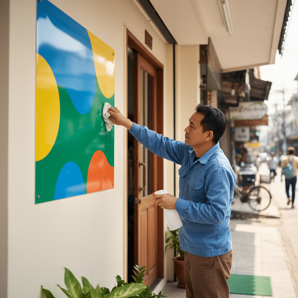 ฝุ่นควัน มลภาวะ และคราบสกปรกจากน้ำฝน เป็นศัตรูตัวฉกาจที่ทำให้ป้ายดูเก่าและหมอง การทำความสะอาดอย่างสม่ำเสมอจึงเป็นสิ่งจำเป็น แต่หากทำไม่ถูกวิธี ก็อาจเป็นการทำร้ายป้ายให้เสียหายหนักกว่าเดิมได้ การเรียนรู้เทคนิคที่ถูกต้องจะช่วยขจัดคราบสกปรกโดยไม่ทำลายชั้นสีและพื้นผิวของวัสดุ