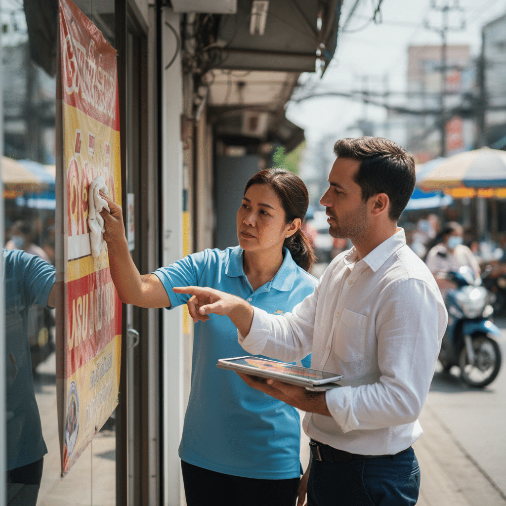 วิธีดูแลป้ายไวนิลและสติ๊กเกอร์หน้าร้าน ทนแดดฤดูร้อน 2026
