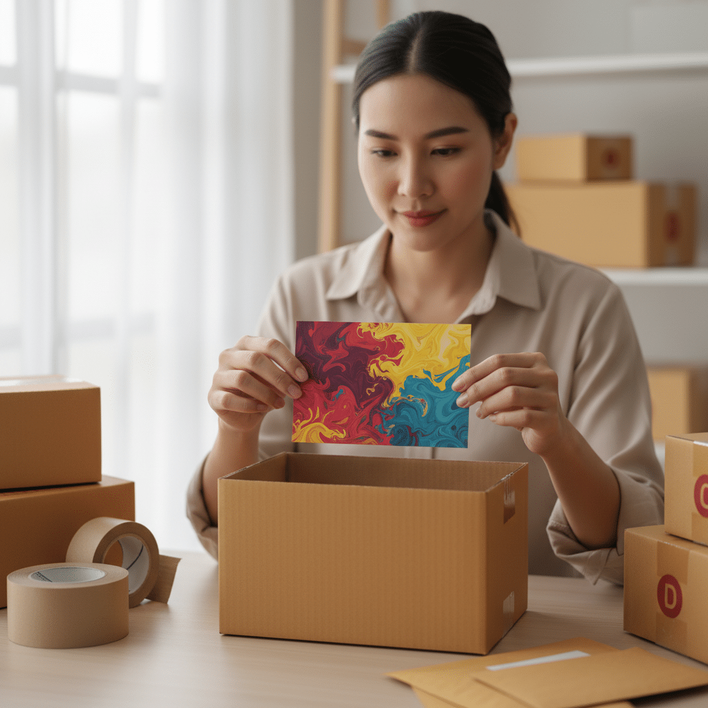 การ์ดขอบคุณไม่ได้ทำงานโดยลำพัง แต่เป็นส่วนหนึ่งของประสบการณ์ทั้งหมด การใส่การ์ดลงในกล่องพัสดุที่พิมพ์ลายสวยงาม พร้อมด้วยสติ๊กเกอร์ของแบรนด์ หรือกระดาษห่อที่มีดีไซน์ จะช่วยสร้างประสบการณ์แกะกล่องที่น่าประทับใจและจดจำไม่รู้ลืม สิ่งนี้กระตุ้นให้ลูกค้าอยากแบ่งปันประสบการณ์ของตนเองบนโซเชียลมีเดีย ซึ่งเป็นการตลาดแบบปากต่อปากที่มีประสิทธิภาพสูง