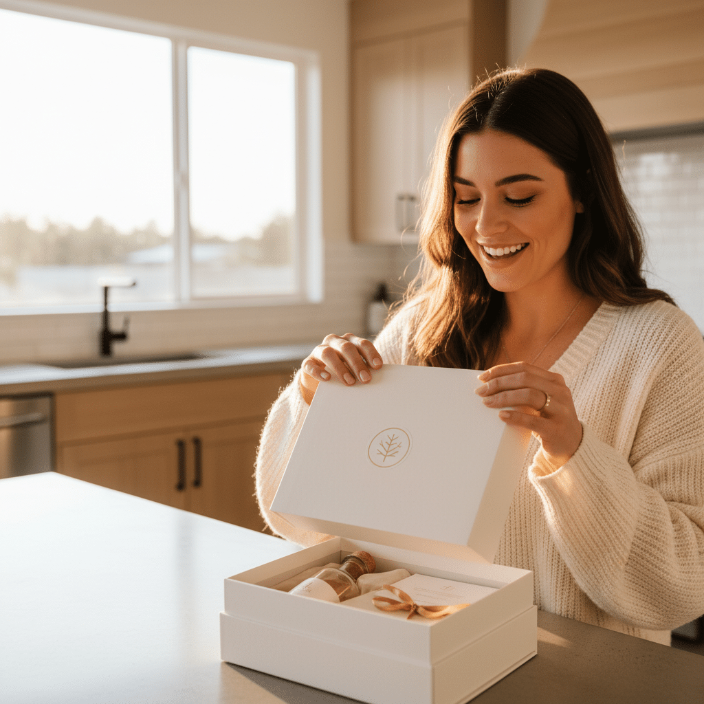 เมื่อเปิดกล่องออกมา การจัดวางสินค้าภายในคือสิ่งที่สร้างความแตกต่างได้มาก การใช้เทคนิคการจัดเรียงเป็นชั้น (Layering) โดยอาจเริ่มจากกระดาษฝอยหรือกระดาษห่อพิมพ์ลายที่ปิดทับสินค้าไว้ ตามด้วยการ์ดขอบคุณที่วางอยู่ด้านบน ก่อนจะพบกับตัวสินค้าที่จัดวางอย่างเป็นระเบียบ จะช่วยสร้างลำดับการค้นพบที่น่าตื่นเต้น การจัดวางที่มีศิลปะไม่เพียงแต่ทำให้ดูสวยงาม แต่ยังเป็นการนำทางสายตาของลูกค้าและสร้างเรื่องราวเล็กๆ ในระหว่างการแกะกล่อง ซึ่งช่วยเพิ่มมูลค่าทางอารมณ์ให้กับสินค้าได้