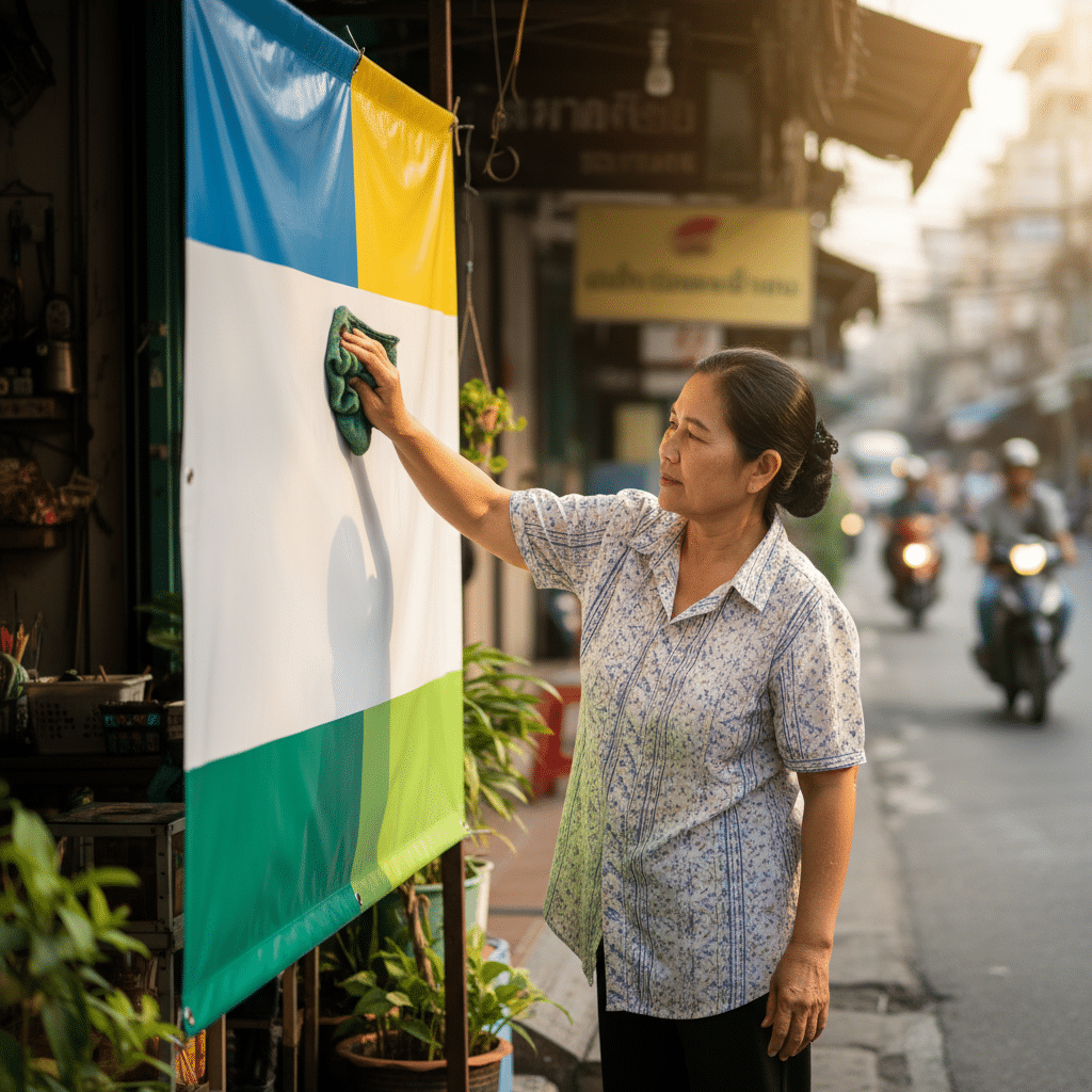 วิธีดูแลป้ายไวนิลหน้าร้านให้สีสดทนแดด ไม่ซีดจางไว