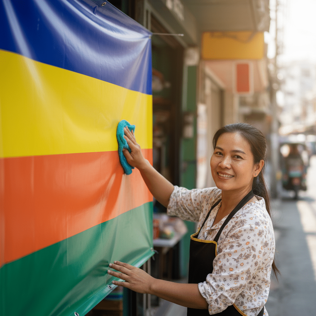 - การติดตั้งและการจัดเก็บที่ถูกวิธี: ติดตั้งป้ายในตำแหน่งที่เหมาะสมและจัดเก็บโดยการม้วนแทนการพับเมื่อไม่ใช้งาน เพื่อป้องกันรอยยับ การฉีกขาด และการเสื่อมสภาพก่อนเวลาอันควร