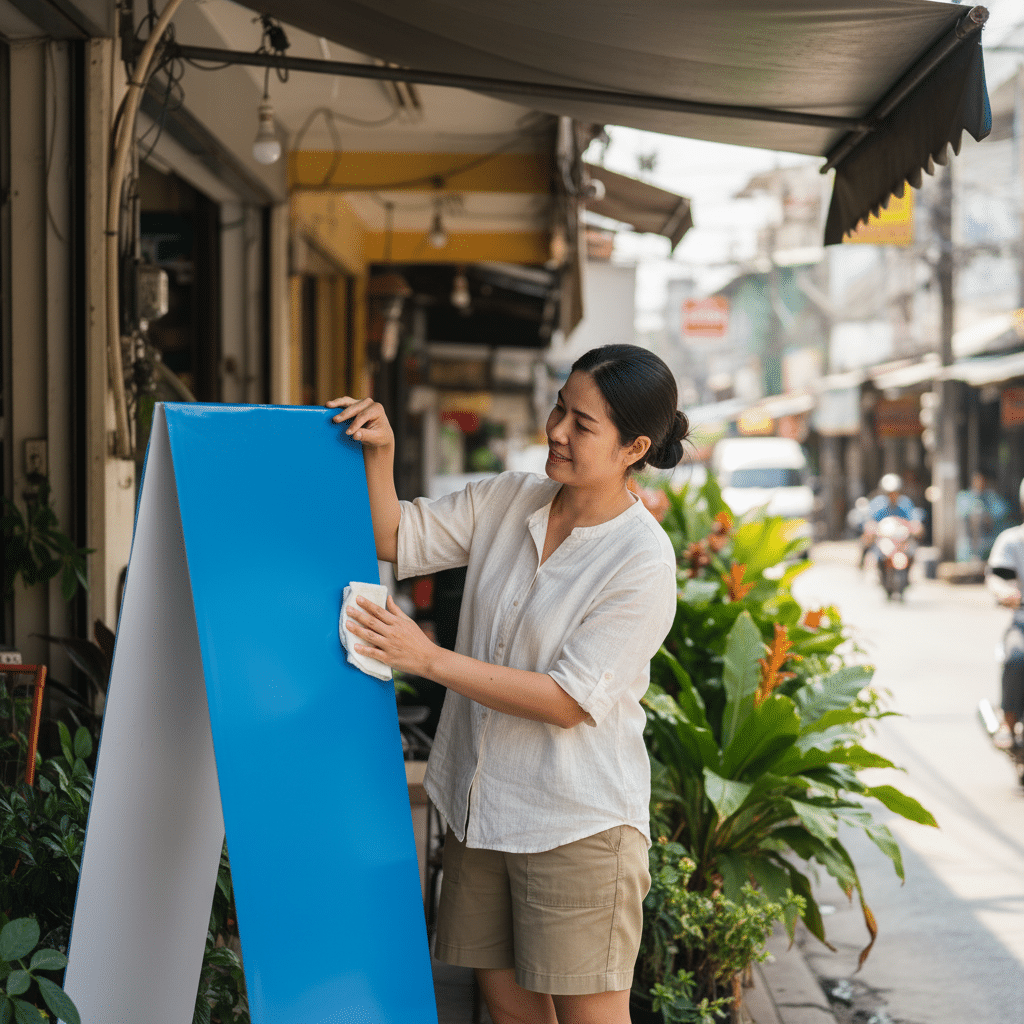 การทำความสะอาดเป็นประจำคือพื้นฐานที่สำคัญที่สุดในการดูแลป้ายโฆษณาให้คงความสวยงามและมีอายุการใช้งานยาวนาน การกำจัดฝุ่นละออง คราบสกปรก และมลภาวะต่างๆ จะช่วยป้องกันไม่ให้คราบฝังแน่นจนทำความสะอาดยาก และยังช่วยลดการเกิดเชื้อราในสภาพอากาศที่ร้อนชื้นอีกด้วย