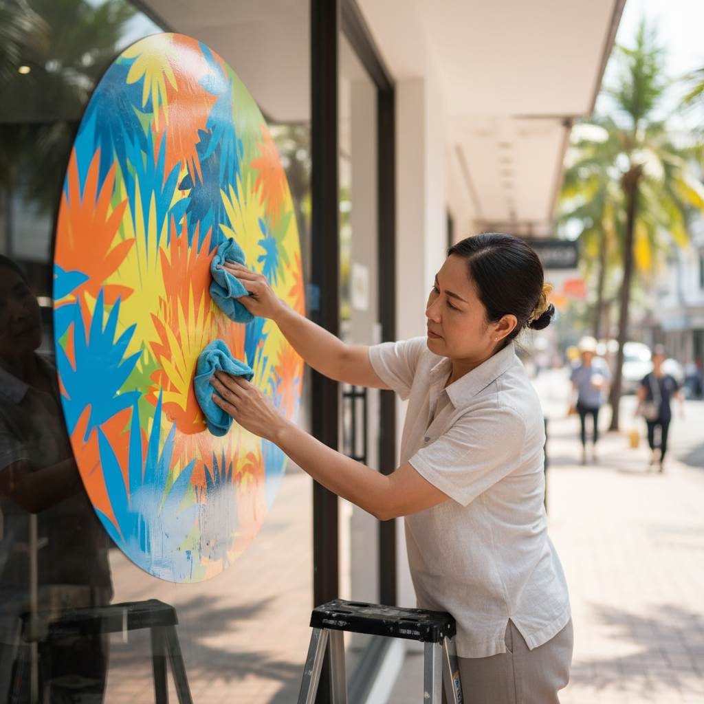วิธีดูแลป้ายไวนิลและสติ๊กเกอร์หน้าร้านให้ทนแดด สีไม่ซีดไว