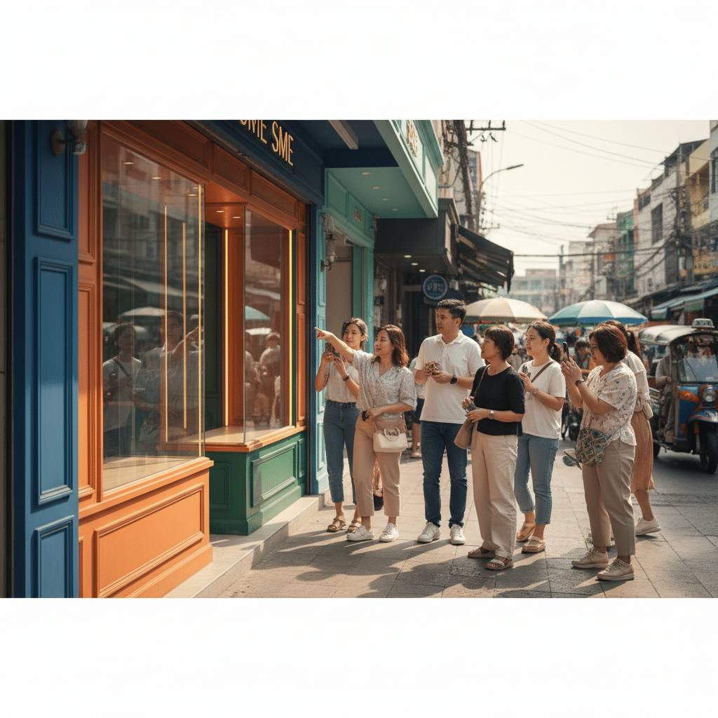 - นักท่องเที่ยวหรือลูกค้าขาจร: ผู้ที่ไม่ได้อยู่ในพื้นที่และกำลังมองหาสินค้าหรือบริการ ป้ายที่โดดเด่นและสื่อสารชัดเจนจะช่วยให้ตัดสินใจเลือกร้านได้ง่ายขึ้น