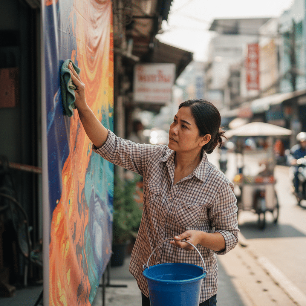 การทำความสะอาดเป็นขั้นตอนพื้นฐานแต่สำคัญอย่างยิ่งใน วิธีดูแลป้ายไวนิล เพื่อให้สีสันคงความสดใสและทนทานต่อสภาพอากาศที่รุนแรง การขจัดคราบฝุ่นละออง มลภาวะ หรือคราบสกปรกอื่นๆ ออกไปไม่เพียงแต่ทำให้ป้ายดูใหม่อยู่เสมอ แต่ยังช่วยป้องกันการสะสมของสิ่งสกปรกที่อาจทำปฏิกิริยากับวัสดุและแสงแดดจนเกิดเป็นคราบฝังแน่นที่ทำความสะอาดยากในอนาคต