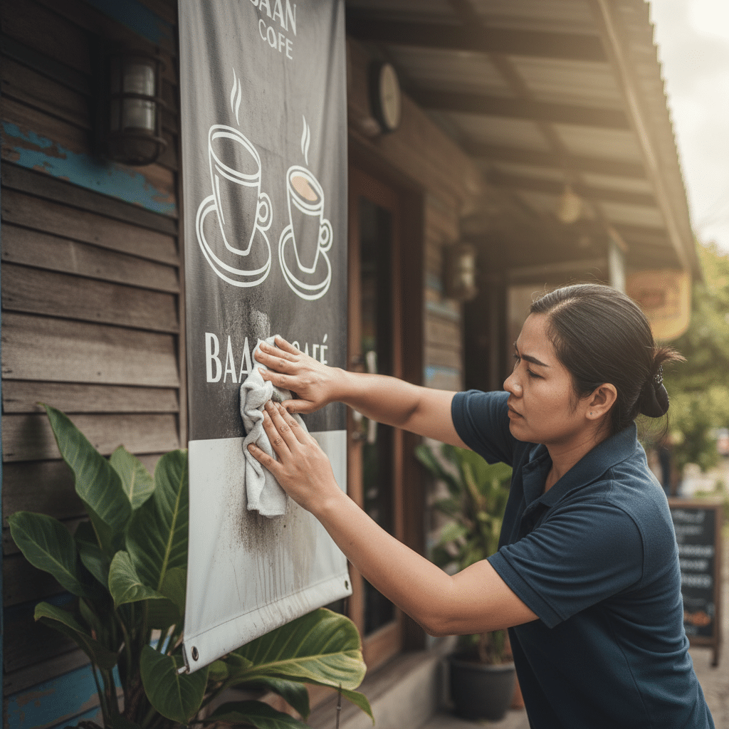 การดูแลรักษาความสะอาดเป็นหัวใจสำคัญของการยืดอายุการใช้งานป้ายโฆษณา คราบฝุ่นละออง เขม่าควัน หรือสิ่งสกปรกที่เกาะติดอยู่บนป้ายเป็นเวลานาน นอกจากจะทำให้ป้ายดูเก่าและไม่น่ามองแล้ว ยังอาจทำปฏิกิริยากับวัสดุและทำให้เสื่อมสภาพเร็วขึ้น