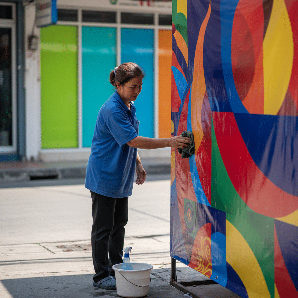 วิธีดูแลป้ายไวนิลและสติ๊กเกอร์หน้าร้านให้สีสดทนทาน: แนวทางการทำความสะอาด