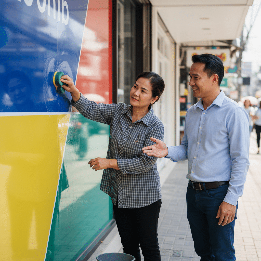 วิธีดูแลป้ายไวนิลและสติ๊กเกอร์หน้าร้านให้สีสวยทนนานแบบมืออาชีพ
