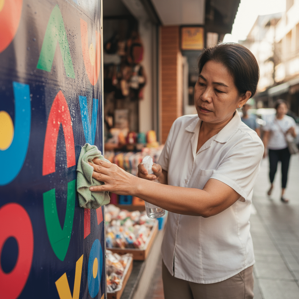 วิธีดูแลป้ายไวนิลและสติ๊กเกอร์ให้สีสดทนนาน ประหยัดงบ SME