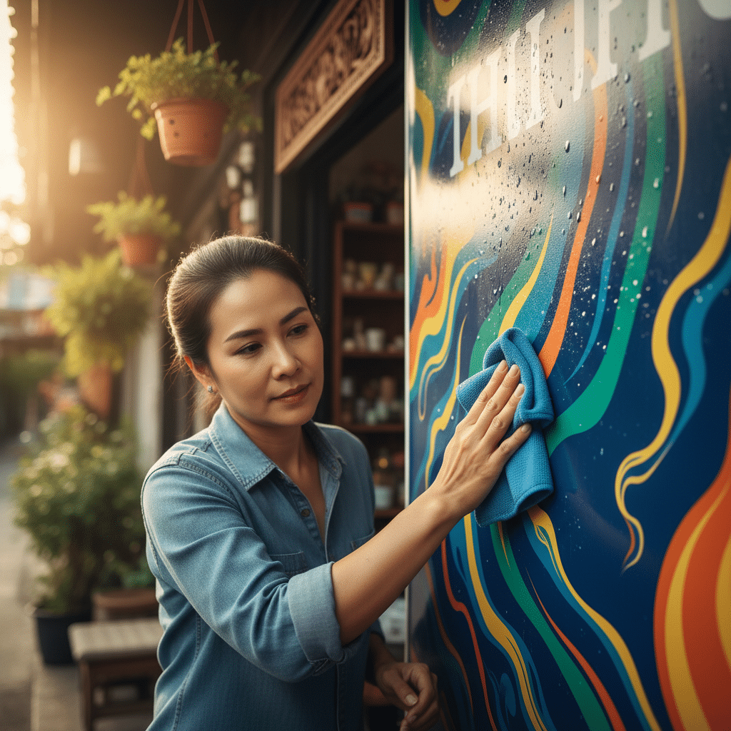 เมื่อเลือกวัสดุที่ดีแล้ว การทำความสะอาดอย่างสม่ำเสมอและถูกวิธีคือขั้นตอนต่อไปที่จะช่วยรักษาสภาพของป้ายไวนิลและสติ๊กเกอร์ให้ดูดีอยู่เสมอ คราบฝุ่นละออง มลภาวะ และเชื้อราสามารถบดบังความสดใสของสีและทำให้ป้ายดูเก่าได้ การทำความสะอาดจึงเป็นสิ่งจำเป็นเพื่อคงความสวยงามและยืดอายุการใช้งาน