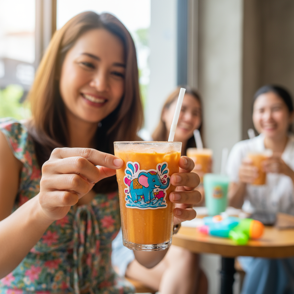 เทศกาลสงกรานต์ถือเป็นช่วงเวลาทองของธุรกิจเครื่องดื่ม แต่ในขณะเดียวกันก็เป็นช่วงเวลาที่มีการแข่งขันสูงที่สุดเช่นกัน ผู้ประกอบการต่างนำเสนอกลยุทธ์ทางการตลาดเพื่อดึงดูดลูกค้า และสติ๊กเกอร์บนแก้วก็เปรียบเสมือนป้ายโฆษณาเคลื่อนที่ที่อยู่ในมือของผู้บริโภคโดยตรง