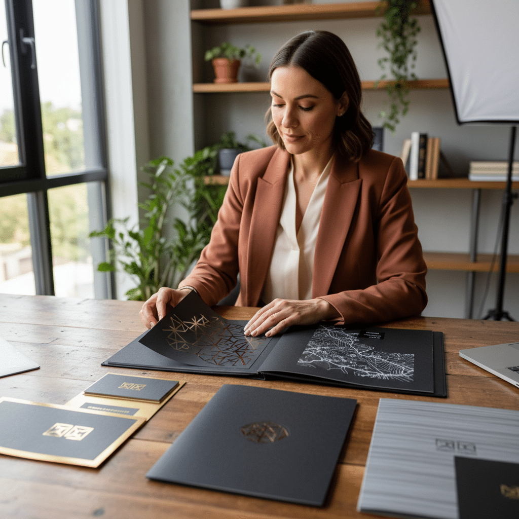 นามบัตรคือเครื่องมือสำคัญในการสร้างเครือข่ายธุรกิจ การใช้นามบัตร Spot UV สามารถสร้างความแตกต่างได้อย่างมหาศาล โดยนิยมเคลือบเงาเฉพาะจุดที่โลโก้ ชื่อ-นามสกุล หรือตำแหน่ง เพื่อให้องค์ประกอบเหล่านี้โดดเด่นขึ้นมาบนพื้นหลังที่เป็นกระดาษด้าน การออกแบบที่เรียบง่ายแต่ใช้เทคนิคนี้เข้ามาเสริม จะทำให้นามบัตรดูสะอาดตา มีระดับ และน่าเก็บรักษามากกว่านามบัตรทั่วไป