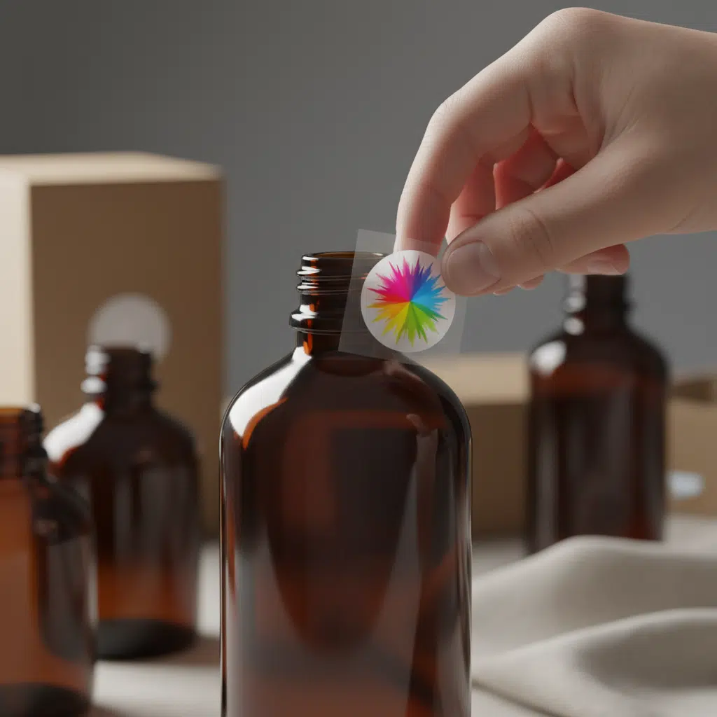 - พื้นผิวบรรจุภัณฑ์สีเข้ม: กรณีที่เห็นได้ชัดที่สุดคือการติดสติ๊กเกอร์ใสบนขวดหรือกระปุกสีเข้ม เช่น สีน้ำตาล สีเขียว หรือสีดำ หากโลโก้หรือข้อความใช้สีอ่อน เช่น สีเหลือง สีฟ้าอ่อน หรือสีชมพู สีเหล่านี้จะถูกความเข้มของพื้นหลัง “กลืน” ทำให้มองเห็นได้ไม่ชัดเจน หรือสีเพี้ยนไปจากเดิมอย่างสิ้นเชิง